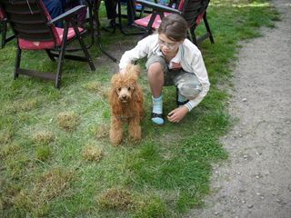 Auf dem linkem Foto werde ich von Tabea gestreichelt.